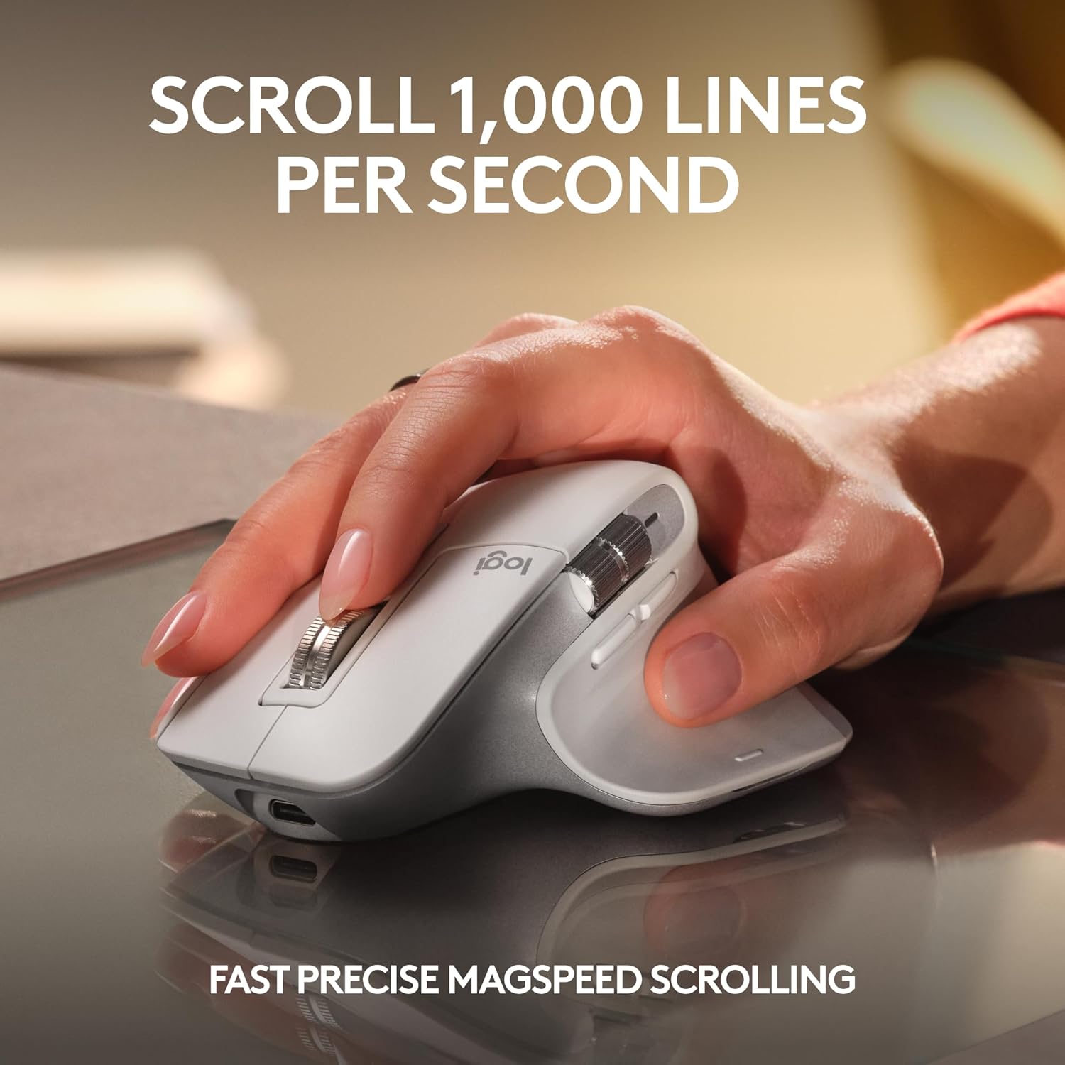 Logitech MX Master 3S Keys S Combo – Performance Wireless Keyboard and Mouse with Palm Rest, Customizable Illumination, Fast Scrolling, Bluetooth, USB C, for Windows, Linux, Chrome, Mac – Pale Grey